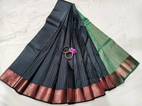 Semi Silk Saree with Copper Jari Border and Contrast Pallu and Blouse