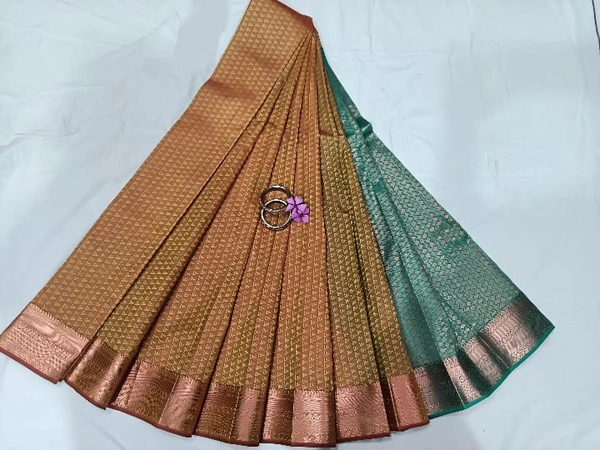 Semi Silk Saree with Copper Jari Border and Contrast Pallu and Blouse